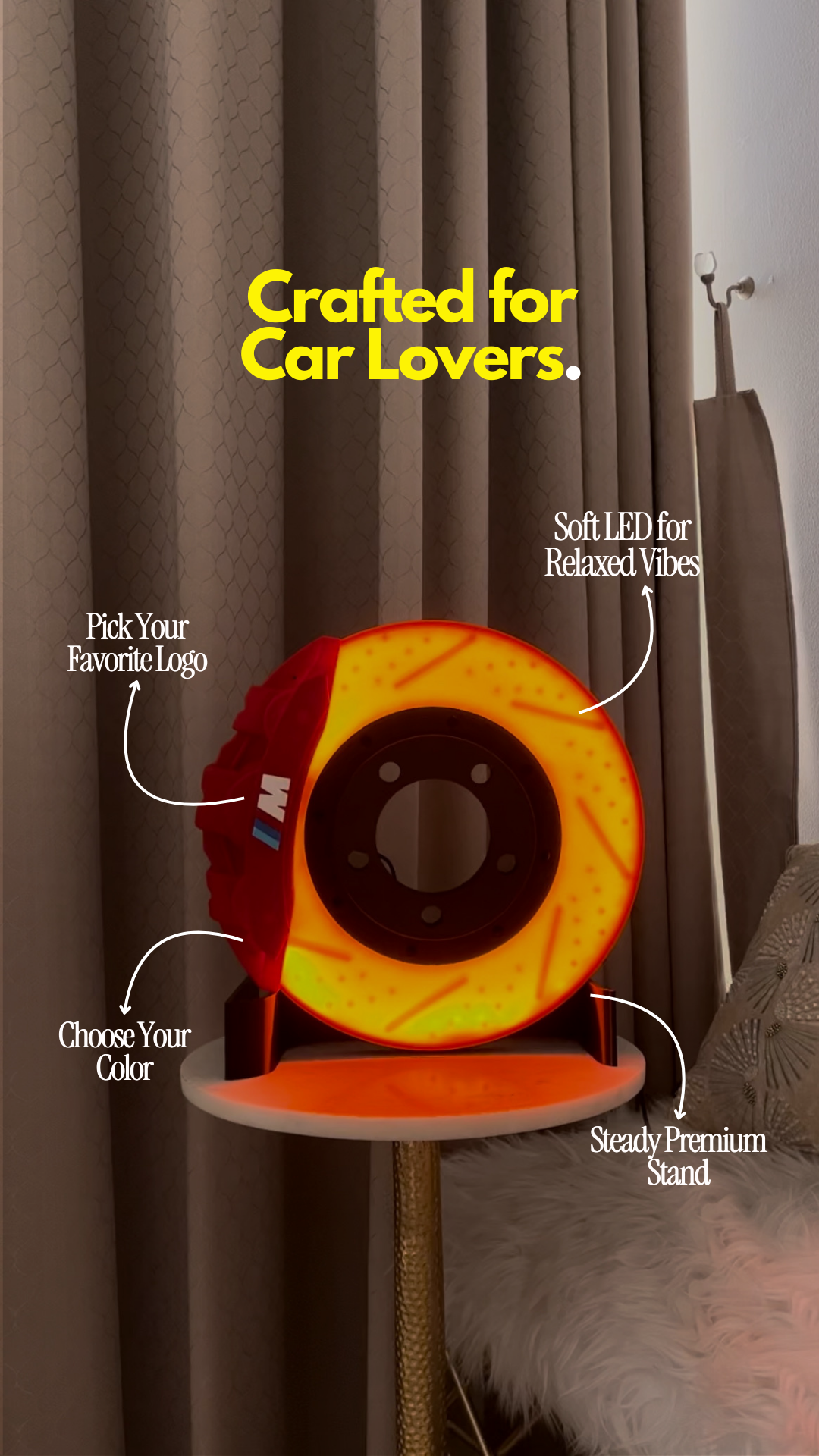 We’re not just another decor brand we build automotive-inspired art pieces that bring power, precision, and presence to your space. Our signature piece? The Brake Disc Lamp a Hand made LED lamp modeled after high-performance brake discs.